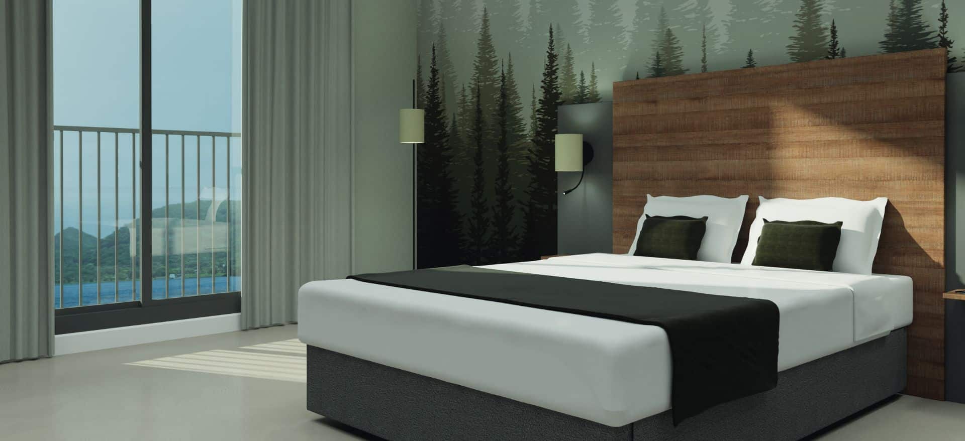 UNE ELEGANTE SUPERPOSITION DE LIGNES CONTEMPORAINES AUX NUANCES DE BOIS CHAUDS ET DU GRIS POUR DONNER PLUS DE DYNAMISME ET DE PESPECTIVE A VOTRE DÉCORATION DE CHAMBRE.